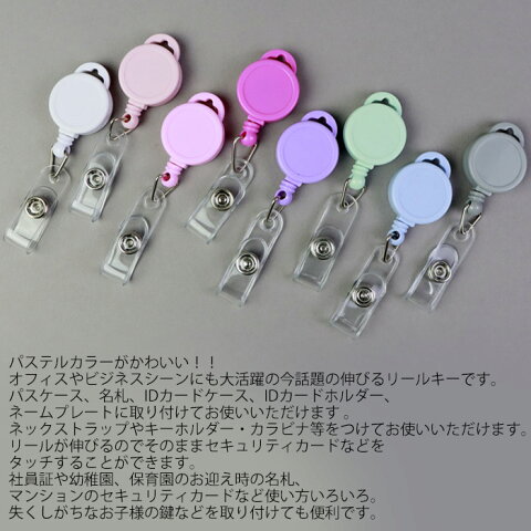 パステル リールキー リール ストラップ 伸びる リールストラップ パステルカラーがかわいい!!オフィスやビジネスシーンにも大活躍の今話題の伸びるリールキーです。