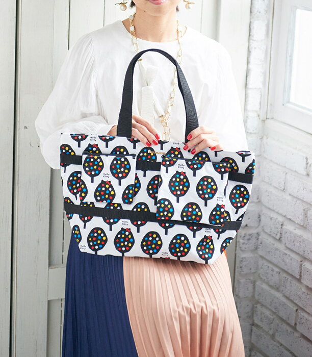 ハローキティ 日本製 トートバッグS ポーチ2個付き ツリー モノトーン 白黒 ホワイト ブラック シンプル サンリオ 【送料無料 あす楽対応】 エコバッグ マザーズバッグ オシャレ かわいい A4 大きめ 大容量 軽量 ギフト プレゼント mm-0028mk-tr