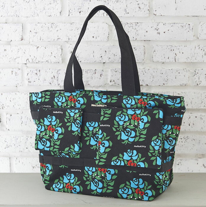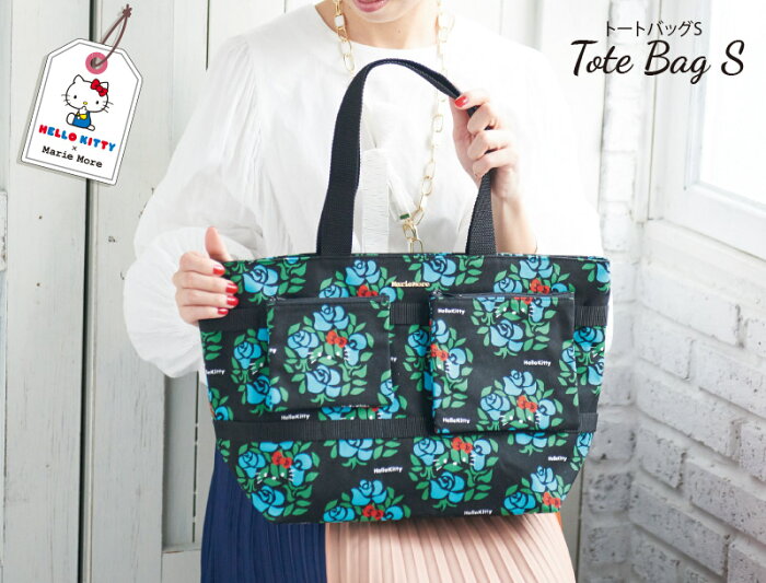 ハローキティ 日本製 トートバッグS ポーチ2個付き 薔薇 サンリオ 【送料無料 あす楽対応】 エコバッグ マザーズバッグ オシャレ かわいい A4 大きめ 大容量 軽量 ギフト プレゼント marie more メアリーモア mm-0028mk-bl