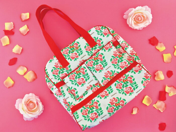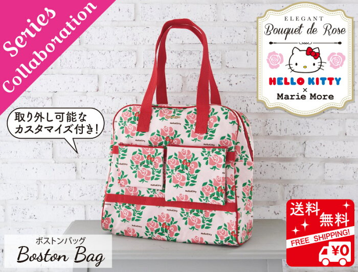 ハローキティ 日本製 ボストンバッグ カスタマイズ ポーチ2個 薔薇柄 ピンク 【送料無料 あす楽対応】 エコバッグ ショルダーバッグ オシャレ かわいい A4 大きめ 大容量 軽量 日本製 習い事 ジム 旅行 通学 ギフト プレゼント marie more メアリーモア